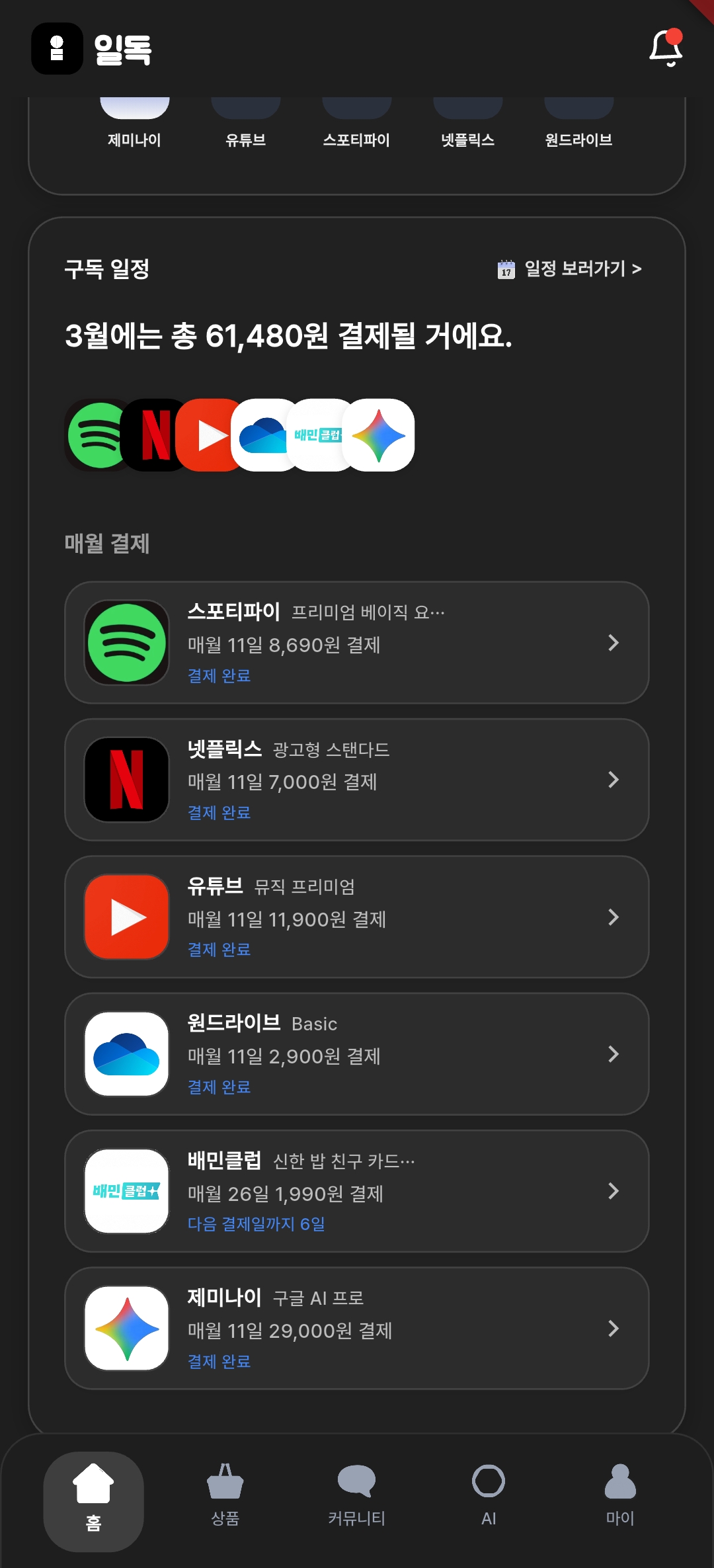 구독 서비스의 모든 정보를 일독에서 확인하세요.